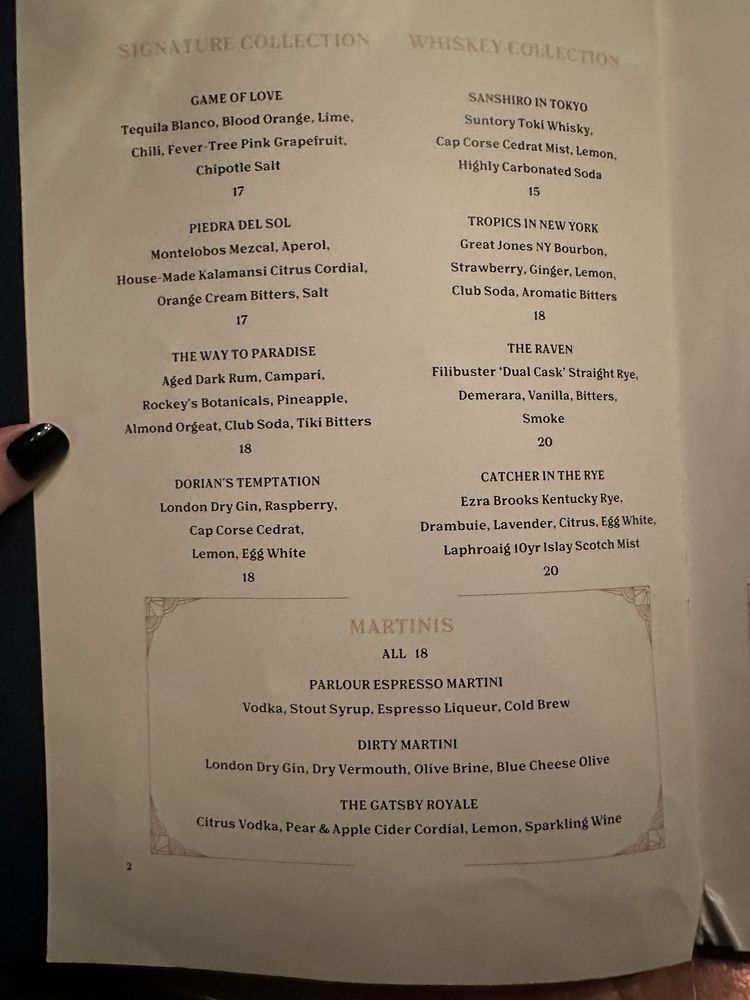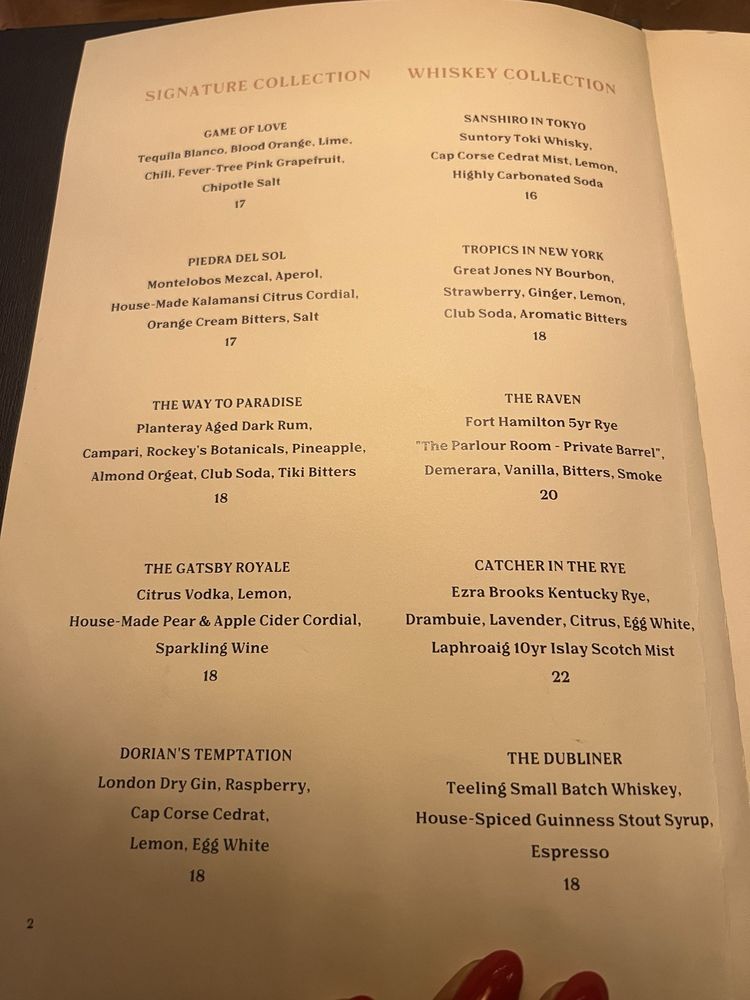 The ambiance exudes elegance, with a touch of mystery that sets the perfect mood for a night out. The extensive list of amenities includes outdoor seating, private dining, and even a drive-thru option for convenience. Whether you're looking for a romantic date spot or a place to unwind with friends, The Parlour Room offers something for everyone.